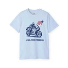Description Introducing our Men’s Bike Racing Special Graphic Printed Ultra-Cotton Tee, a must-have addition to every biking enthusiast's wardrobe. Crafted from premium ultra-cotton, this tee promises unparalleled comfort and durability, making it perfect for both casual wear and active lifestyles. The short sleeves are designed to provide ease of movement, while the classic round neck adds a touch of timeless style. What sets this tee apart is the striking printed graphic of a biker triumphantly holding a flag, a symbol of victory and passion that resonates with the spirit of racing. The vibrant colors and intricate details of the design are sure to make a statement, whether you're on the track or out with friends. Its soft, breathable fabric ensures you stay cool and comfortable all day long. Pair this tee with your favorite jeans or shorts for an effortlessly stylish look that celebrates your love for biking. Whether you're a seasoned racer or a casual rider, this tee is designed to fuel your passion and keep you looking great. Embrace the thrill of the ride with a tee that’s as bold and dynamic as you are. Overview: This ultra cotton tee is a classic. Quality cotton construction means that designs are sure to shine. The shoulders are tapped for a good upper body fit. There are no side seams, ensuring a clean, unbroken flow. The collar has ribbed knitting for improved elasticity. The materials that went into this product are sustainably sourced and economically friendly. Fabric: This tee is an excellent, all-season wear thanks to its medium fabric (6.0 oz/yd² (203 g/m²)). Made with 100% US cotton, this tee guarantees long-lasting comfort and style Fit: The classic fit along with the crew neckline make it a highly versatile choice for casual and semi-formal occasions as its neat, clean looks can blend in any setting and are perfect for accessorizing. Fabric Blends: Ash Grey - 99% cotton, 1% polyester, Heather Colors & Safety Colors - 50% cotton, 50% polyester, Antique Colors & Sport Grey - 90% cotton, 10% polyester