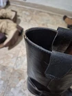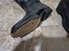 Men's Unbranded Korean Black Leather Boots Size 9 D Exellent Condition. You won't be disappointed in the quality of these boots There is no brand on these boots. They may have been custom-made for someone, which is common in South Korea. They look brand new with a few minor flaws. See photos. On top of the shafts, the black color is slightly shredded off. There is an issue with the heels cosmetically
