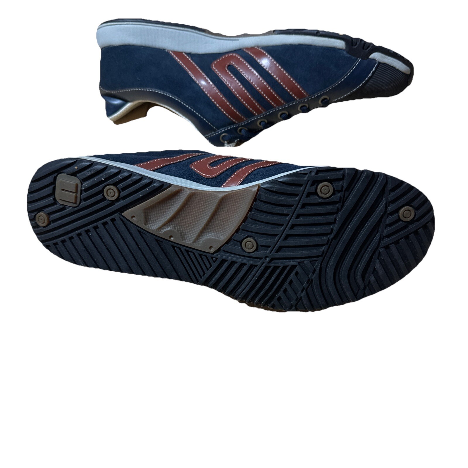 This is a pair of men's Unlisted boat shoes in blue, featuring a lace-up closure and a solid pattern. The shoes are a size 11.5 in the US and UK, with a medium width. Designed for casual occasions, these comfortable shoes are suitable for everyday wear. The upper material is manmade, and the shoes are made in China. Perfect for men looking for a stylish and versatile addition to their footwear collection.
