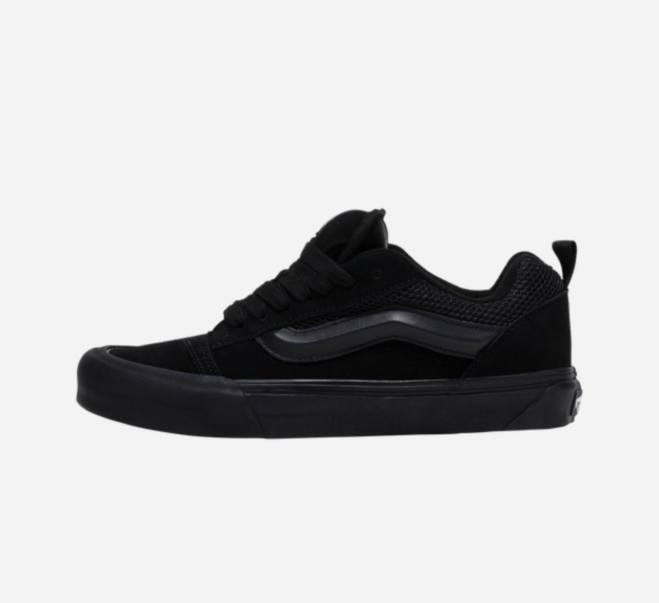 The Vans Knu Skool Triple Black Sneakers in size 10 are a stylish and versatile choice for casual and activewear. Featuring a round toe shape, lace-up closure, and waffle grip rubber sole, these sneakers offer comfort and durability. The suede fabric and tonal stitching accents give them a 90s skate/Y2K era influence, making them perfect for a streetwear or grunge look. With a low-top silhouette, cushioned insole, and extra-chunky laces, these Vans sneakers are a must-have for anyone looking for a retro and on-trend footwear option.