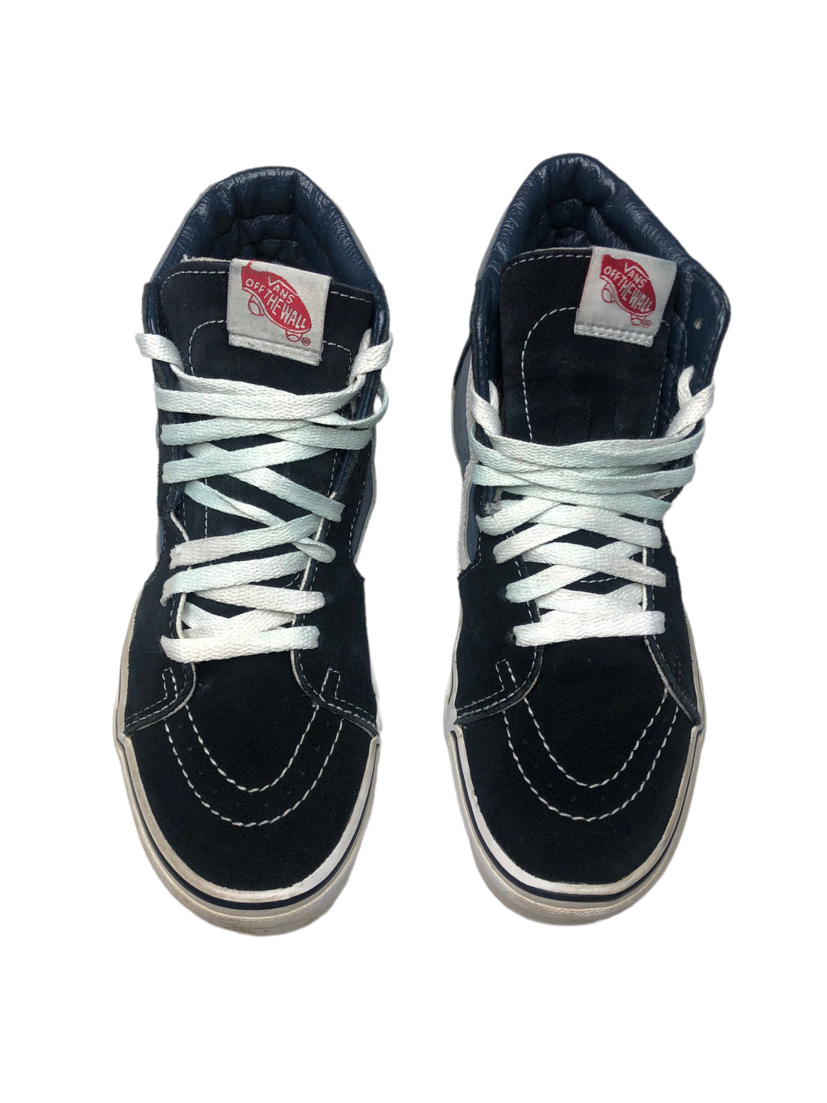 Vans SK8-HI Canvas Black Blue Skateboard Shoes Men's (Size: 6.5) 721454 Condition: Used Condition Description: Shoes are in Great Condition. See Pictures provided below. Color: Black/Blue Sole: Waffle Rubber Sole The Sk8-Hi was introduced in 1978 as Style 38, and showcased the now-iconic Vans Sidestripe on a new, innovative high top silhouette. As only the second model featuring the recognizable marker formerly known as the “jazz stripe,” the Sk8-Hi brought a whole new look to the Vans family. Honoring that first legendary high top, the Sk8-Hi is made with sturdy suede and canvas uppers in a variety of classic and unexpected colorways. This lace-up shoe also includes re-enforced toe caps, supportive padded collars, and signature rubber waffle outsoles. We are always adding fun new items for your pleasure - follow our store and visit again soon at ~FamilyBest1~ Thank You!! Customer Appreciation ALWAYS COMES FIRST!!