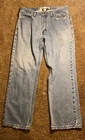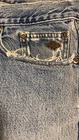 These jeans are very cool they do however have a few small holes as they are vintage and comes with it!! I have tried to photograph them the best I could, however the jeans are still structurally sound and have plenty of life in them! Step up your denim game with these vintage Y2K Harley-Davidson straight leg jeans. Made with high-quality cotton material, these blue jeans are perfect for any casual occasion. Featuring a zip closure and a 30-inch inseam, these jeans are a must-have for any Harley-Davidson fan. Not only are these jeans stylish, but they also come in a size 35x30, making them perfect for regular-sized men. The distressed detail adds a touch of edge to these classic jeans, making them a great addition to any wardrobe. Don't miss out on the opportunity to own a piece of Harley-Davidson history.