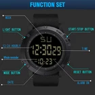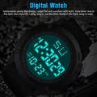 Product Feature Digital Watch : Fashionable sporty dial design. Large Dial and numbers with light, show time clear in the dark. Use import EL Lamp, easy to see the time clearly in the light, easy to read. Men's Watch : Appeals to men, especially to those who like doing sports, shock resistant, stopwatch,12/24H time mode, and LED backlight functions to make it perfect for all kinds of sport and daily use. Shock Resistant : perfect for both outdoor and indoor sports, such as running, climbing, fishing, etc Multifunction Watch : Auto Date, Alarm, Water Resistant, LED display, Shock Resistant, Stop Watch, Back Light Waterproof : 164 Ft / 50 M water resist, Please DO NOT press any buttons underwater, and in case of a damaging waterproof ring, please keep it away from steam and hot water. Note 1. Please allow tiny size deviations due to human measurement. 2. 50m normal water-resistant: wash hands, daily use waterproof, not suitable for soaking, swimming, bathing and underwater activities like deep diving. Product Specification Type Electronic Watch Case Color Black Case Material resin Band Material TPU Mirror Material Plexiglass mirror Watch Shape Round Dial Window Resin Movement Digital Thickness 17mm Band Width 22mm Watch diameter 50mm Dial Diameter 46mm Total Length 260mm Clasp Type Stainless steel buckle Water Resistance Rating 50m (5 ATM) Wear size 160mm-240mm Package Included 1 x Watch 1 x User Manual