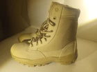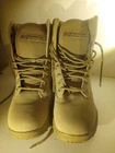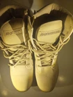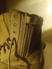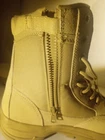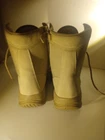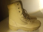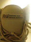 These are men's waterproof tactical boots in a desert beige color, featuring a durable design suitable for military, combat, hiking, motorcycle riding, and work activities. Made by RG, these boots are designed for both men and women with a medium width and US size 11. The boots are crafted in Vietnam and are ideal for outdoor use due to their waterproof feature, providing protection and comfort in various rugged environments.