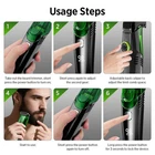 30 Days Return Fast Shipping Trusted Seller Cordless Men Beard Trimmer Rechargeable Electric Shaver Vacuum Hair Clipper Cordless Men's Vacuum Beard Trimmer Rechargeable Mustache Trimmer IPX6 Waterproof Electric Beard Trimmer Electric Shaver Vacuum Clipper for Mustache Sideburns and Stubble Features: 1. The beard trimmer features a super suction vacuum trimming design that effortlessly collects trimmed hair into an internal compartment, keeping your sink and floor clean while providing convenience in handling and cleaning. 2. Equipped with R-type rounded blade heads, this mustache trimmer ensures precise trimming without harming your skin. Its rounded edges provide maximum comfort by eliminating skin scratches and cuts during use. 3. With IPX6 waterproof technology, this electric beard trimmer supports both dry and wet shaving. 4. Adjust with precision using the knob-controlled limit combs on this cordless beard trimmer, which offers 20 different length settings for customizing your look across facial areas like beards, chins, and sideburns; remove the comb for an even closer shave. 5. Powered by a 1400mAh large-capacity battery, the rechargeable shaver delivers over 90 minutes of continuous use per charge and can be conveniently charged via USB from a computer, car charger, or power adapter, perfect for travel or business trips. 6. Stylishly designed as a vacuum clipper, it makes an ideal gift for Father's Day, birthdays, or anniversaries, offering a modern aesthetic that appeals to fathers, husbands, or boyfriends looking to enhance their grooming game. Specifications: Colour: Green Material: ABS Speed: 2 Speeds Charging voltage: 5V 1A Built-in battery capacity: 1400mAh Charging time: 2 hours Use time: 90 minutes Waterproof grade: IPX6 waterproof Packing List: 1*Main Unit 2pcs*Limit Comb (small comb 1-10mm, large comb 11-20mm) 1*Type-C Charging Cable 1*Cleaning Brush 1*Instruction Manual in Six Languages SHIPPING POLICY: Free Worldwide Shipping RETURN POLICY: 30 Days returns! PAYMENTS: Safe and secure payement with PayPal! FEEDBACK: Customer satisfaction is very important to us. If you have any problem with your order, please contact us. We are here to assist you and resolve any issues that arise, so please give us a chance to do so prior to potentially posting any negative feedback. We are sure that we can provide a solution that makes you satisfied. CONTACT US: If you have any queries, please contact us via ebay . We usually respond within 24 hours on weekdays. Thank you for shopping with us!