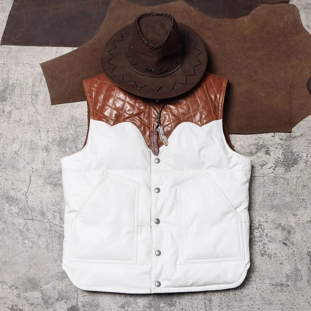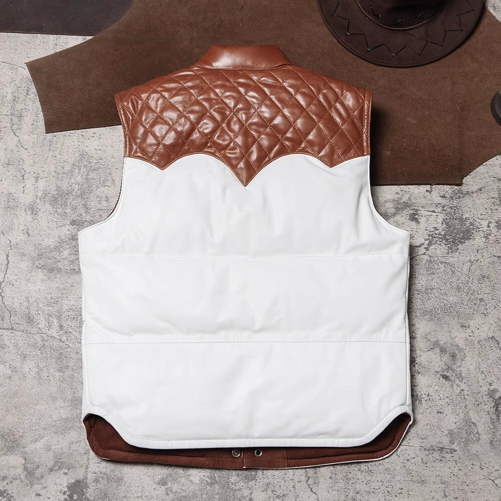 $ 63.64Men Black Beige Classic Puffer Lambskin Sleeveless Leather Vest Jacket