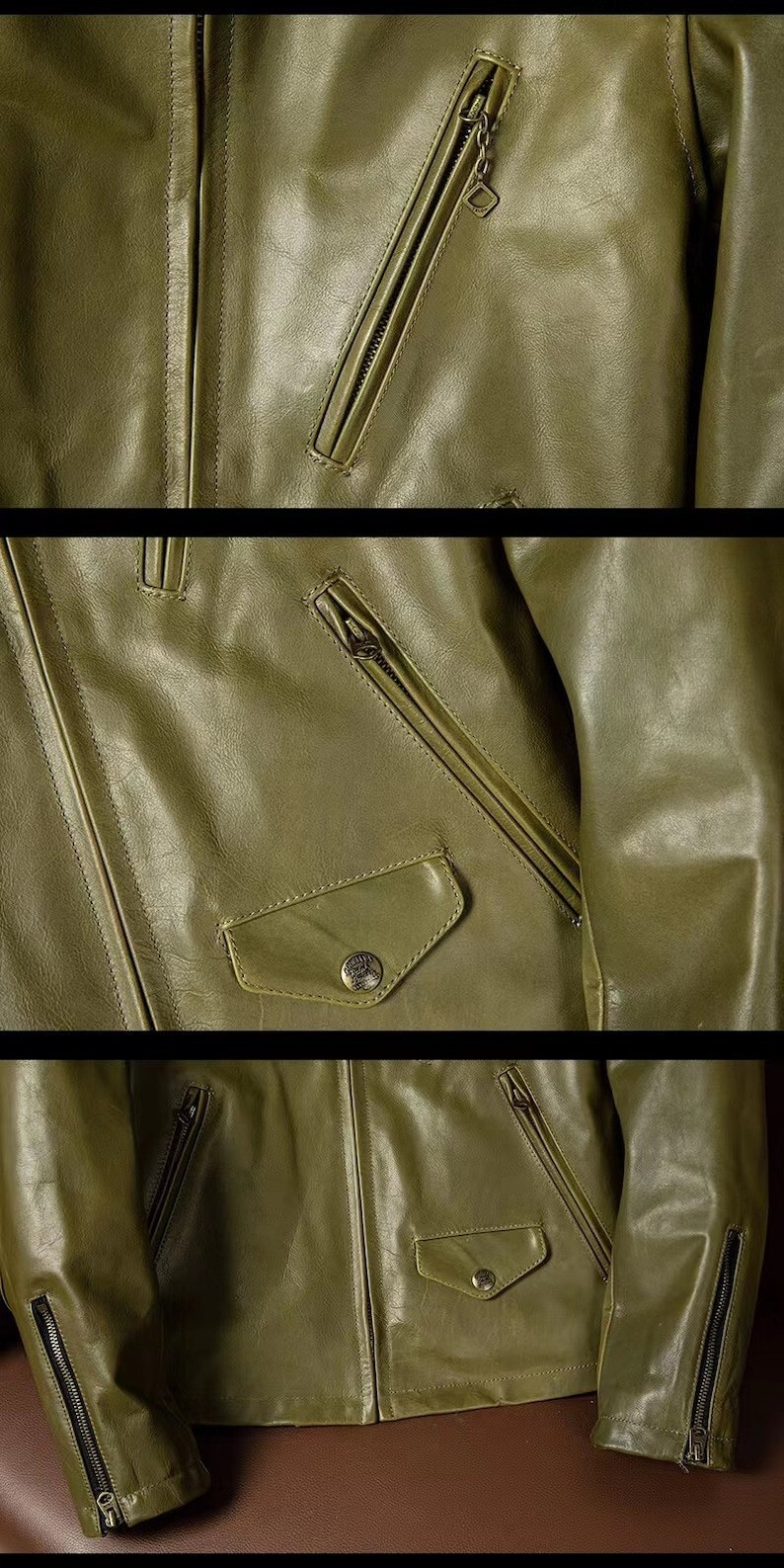 Features Condition : Brand New With Tags Condition Size Details : Kindly Refer Size Chart Below. Zipper : Metal zipper (YKK) Inside : Soft Smooth Satin Lining Brand : Handmade (Made by SKILLED CRAFTSMAN) Style : Motorcycle / Biker / Bomber / Chris or as shown in picture Attractive style Jackets. Design : Brilliant Design & Premium Stitched Through Out. Handmade : Brilliantly Designed, professionally cut & Premium stitching, we have manufactured it with all attention to details. Leather : This jacket is made exactly as Premium Class leather. It has been carefully. Available in Real Leather. Season : Ideal for All Season. Color : As in the listing images Color might slightly vary due to digital photography and monitor resolution, We Try Our Best to Adjust the Lighting to Acquire the Right Color of Each Item. However as With all Digital Photos, Colors May Vary From Computer to Computer. SIZE THESE ARE USA STANDARD SIZE BUT SLIM FIT IF YOU WANT A RELAX FIT BUY ONE SIZE UP. WE CAN ALSO MAKE THIS JACKET ACCORDING TO YOUR REQUIRED MEASUREMENTS. PLEASE MENTION YOUR SIZE DETAILS IN THE PERSNALIZATION SECTION YOUR CHEST,ARM,SHOULDER TO SHOULDER & LENGHT MEASUREMENTS? Please make sure that you select the right size from the above-mentioned size chart. If you have any confusion, please contact us before buying the product so that we can guide you about the right size. If your size is not available in the above size chart, then contact us via Messages. Customize / Tailor Made Leather jacket for Men & Women in Genuine Lambskin leather jacket custom made orders as per your requirement we will give you. Dear Customer, Please answer the below questions in order to serve you better : Shoulder= Chest= Arms = Waist = Sleeves= Tummy = Length of jacket = HIP = Actual height = Fitting = slim and Regular Please note we do keep loosing from the body measurement. Why Choose Us? Our creative mind set is about fashioning current and classic pieces that everyone can make his own, every day. Leather never lies - so size, tailoring and quality are our guarantee. We research different ways to treat the material and bring in specially crafted details. Truly, we embrace the adaptable nature of leather as that requires each piece to be exclusive and irreplaceable. Customization Q: Can our logo or any design be printed, embossed on the products? Yes, changes in design, color, leather type etc. can be made on demand. Please contact us. We can design and develop products as per your specific requirements. QUALITY IS GURANTEED We believe in long-term relationship with our Customers. We use the high-quality Leather in our products, buy with confidence. If you have any problems with our items, please let us know before leaving a feedback and we will happily resolve your issue. Buy with confidence Q: Why choose us as your seller? 1: We are manufacturer & don?t compromise with product quality. 2: We offer competitive prices. 3: No extra charges on customization. 4: Satisfy customers with appropriate communication. 5: No fuss returns policy. RETURN POLICY Q: What are your policies regarding any dispute or return? We strictly follow the eBay policies. We offers 30 days money back guarantee. We are more than happy to work out any replacement or disputes that customers may have. Please contact us before Opening the Disputes and Cases or leaving unwarranted feedback. we will be happy to resolve your issues related the order. 24/7 Online Customer Service Q: My question is not listed here? If you might have any question please send an eBay message directly, we will assist you 24/7. FEEDBACK If you are unhappy with Our service for some reason please discuss it with me before leaving a negative one. A Positive Feedback Will Be Automatically Left For a Positive experience. Shipping Policy As Per The Shipping Section of the Product. Tracking number will be provided after shipment. We use DHL, FedEx and UPS for all country. Payment Method We will accept payment through eBay.