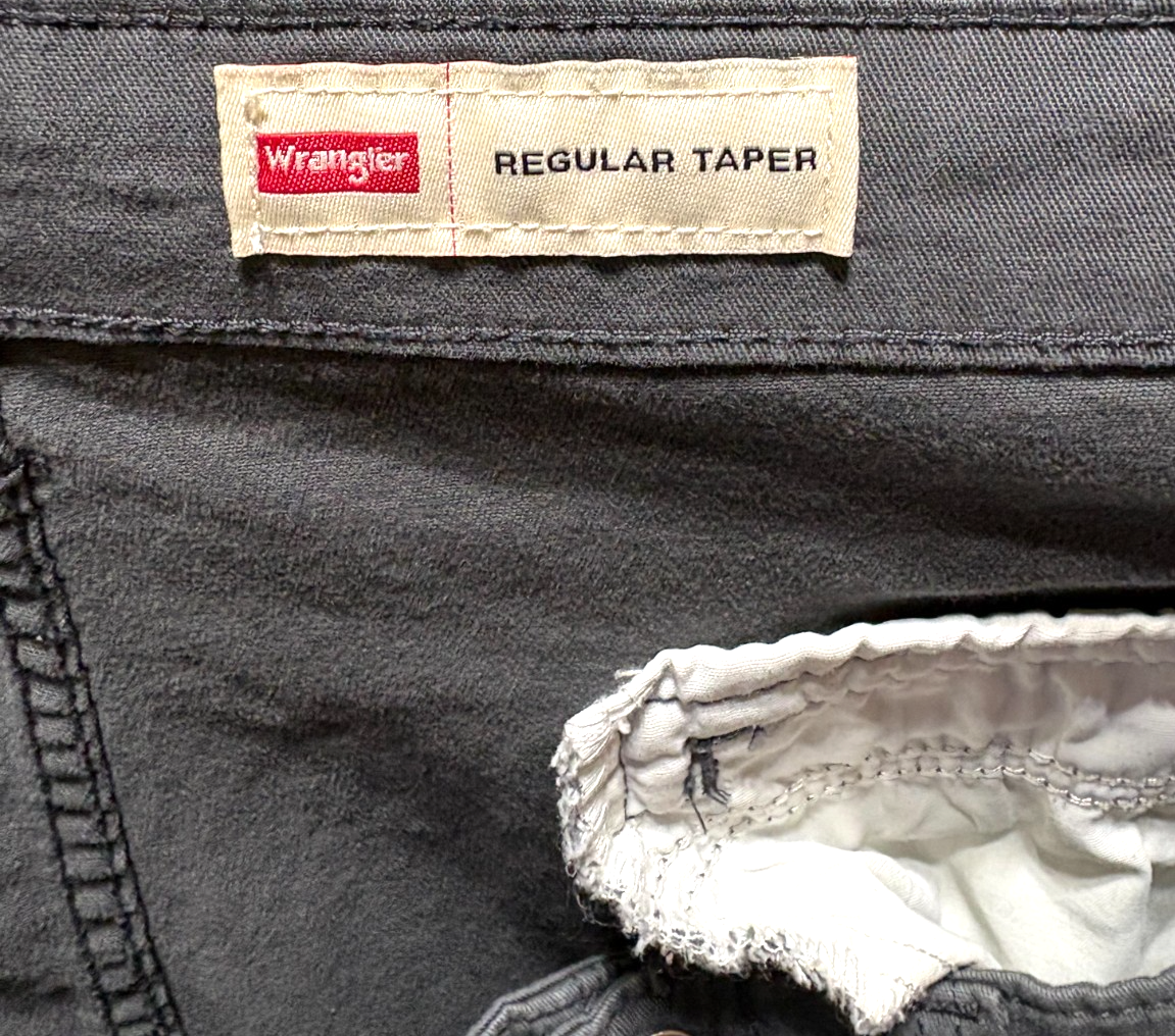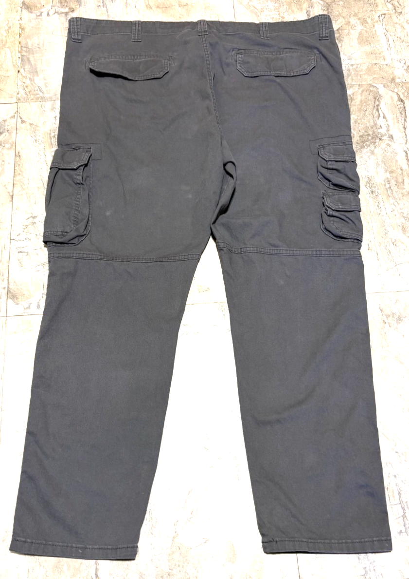 The Mens Wrangler Cargo Pants in size 44x30 are perfect for casual or workwear occasions with a relaxed fit. These dark gray pants are made of 98% cotton and 2% spandex, featuring cargo pockets and a tapered leg style. The flat front design and zip/button closure make them easy to wear, while the machine washable material ensures low maintenance. Ideal for everyday wear and adding a touch of workwear style to your wardrobe.