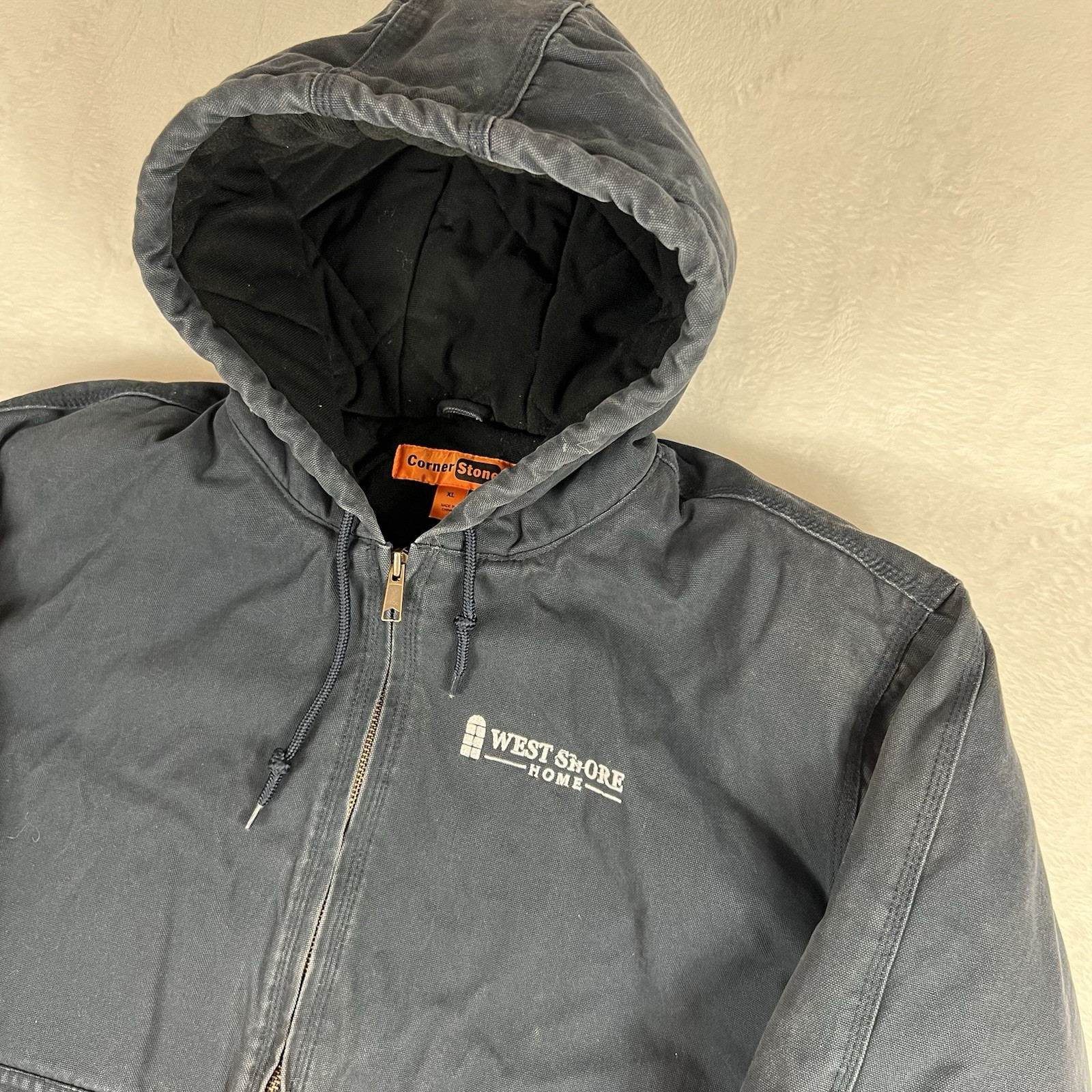 Distressed Corner Stone Work Jacket Mens XL Blue Thick Insulated Carhartt Style