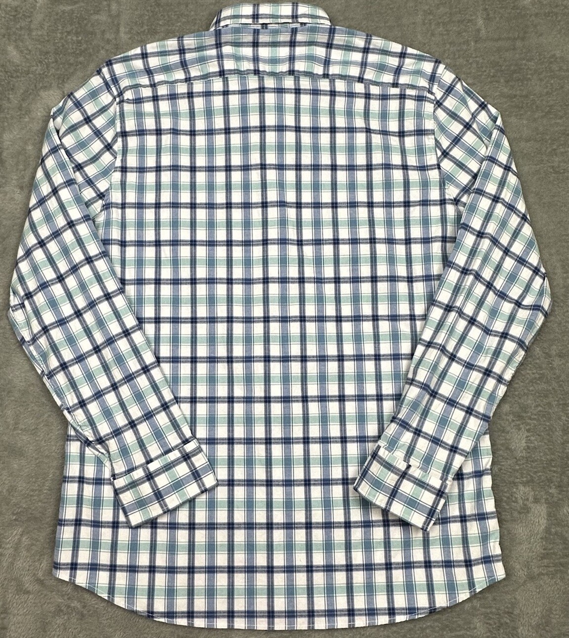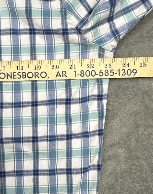 Lee Shirt Mens XL White Teal Blue Plaid Regular Fit Stretch Long Sleeve Casual Great pre-owned condition and laundered. Please see measurements in photos. I ship next business day, but sometimes same business day and Saturday if order is paid for early enough. Please let me know if you have any questions. I am open to offers!! Feel free to look at other items in my store! Thanks!