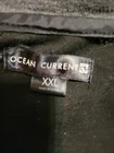 This men's sweatshirt is a black zip-up hoodie from the brand Ocean Current in size 2XL. Made from a cotton blend fabric with a microfiber texture, it features a black cat logo as an accent. The sweatshirt has a full zip closure and a hood for added comfort and style, making it a cozy and stylish choice for casual wear. Perfect for those who enjoy a 90s theme in their wardrobe, this Ocean Current sweatshirt is ideal for cross-training activities or everyday wear.