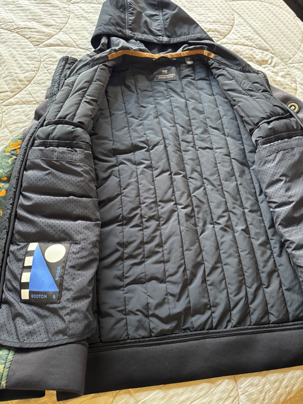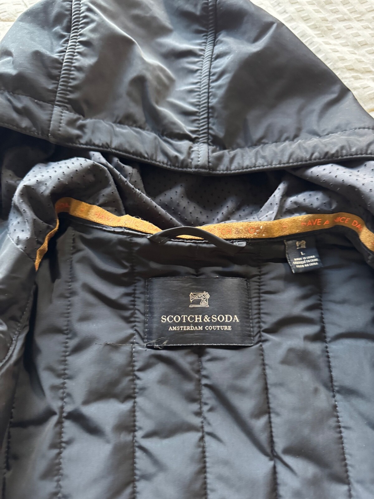 Wrap yourself in the effortless sophistication of Scotch & Soda's bomber jacket, a perfect blend of comfort and style for the discerning gentleman. Crafted in a versatile blue hue, this size L jacket is designed with a lightweight polyester outer shell, ensuring durability and ease of movement.The jacket features a classic silhouette that complements any ensemble, whether you're out for a casual coffee or headed to the office. Tailored to fit the modern man, this regular size type bomber jacket is a timeless addition to your wardrobe, offering both warmth and a touch of elegance.