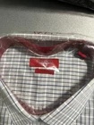 This product is a men's dress shirt by the brand Alfani in a size 17.5 neck with a 32/33 sleeve length. The shirt is a light grey-blue color and features long sleeves. It is a regular size type and is designed for men's formal wear.