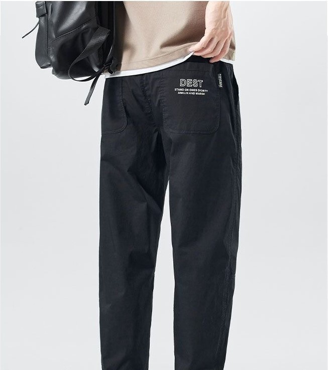 Men's summer thin quick-drying pants, loose casual pants, ankle sweatpants black Style: Korean version Style: corset pants Pant type: Loose Pant length: Trousers Waist type: mid-waist Belt: No belt Trouser front: Tie the closed front Thickness: Thin Suitable season: Summer Suitable for: teenagers Main fabric composition: Polyester fiber (Polyester) Application scenario: Routine Color: Black