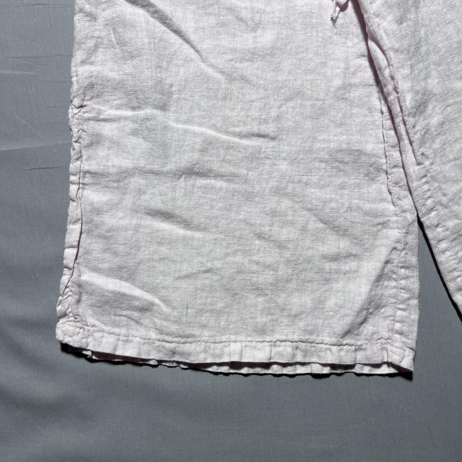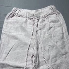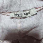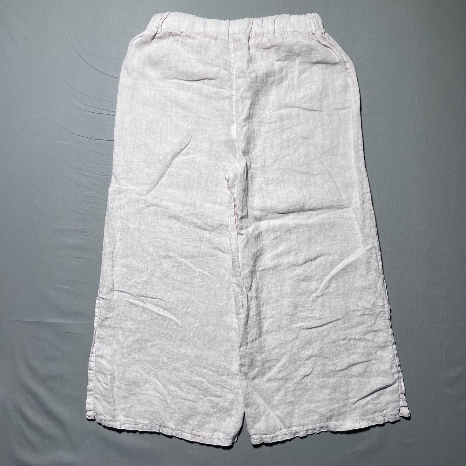 Brand: Meo Meli Made in Italy Material: 100% Linen (Lino) Style/Code: ART. 262 (as on care tag) Color: Light pink/blush Womens pull-on pants with elastic waistband and adjustable drawstring Wide leg, cropped silhouette with side slits at the hem Lightweight, breathable linen ideal for warm weather, resort, or casual wear Tag size not present; fits like Womens Medium based on measurements shown in photos Unlined; no visible pockets Notes: Please review all photos for details, fabric texture, and fit information.