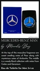 Home Perfume for Her Perfume for Him Unisex Testers for Her Testers for Him Kids MENU Store Pages Home View All Listings About Us Shipping Orders and Returns FAQ Contact Us Store Categories Perfume for Her Perfume for Him Unisex Testers for Her Testers for Him Kids Mercedes-Benz Man by Mercedes-Benz EDT (Eau De Toilette) 3.3 / 3.4 oz (100ml) New In Box At the top of this masculine fragrance are sweet smelling notes of Pear along with mysterious notes of Ambrette. The middle is a woody-floral collection with notes from Cedar and Geranium. BRAND: Mercedes-Benz FRAGRANCE NAME: Mercedes-Benz Man SIZE: 3.4 fl oz CONCENTRATION: Eau de Toilette FORM: Spray CONDITION: New GENDER: Men PACKAGE TYPE: New Retail Box Package Type - RETAIL BOX? This item comes in brand new manufacturer retail packaging, same as what is found in a retail store. unused, unopened, undamaged item. SHIPPING We ship all orders the same day or next business day. Once an order is shipped, we will email you a tracking number. We ship to all USA states including Puerto Rico, Hawaii, Alaska, APO/FPO/DPO and selected international destinations. (Please check shipping and handling tab for country specific details) Please make sure you enter the correct shipping address at the checkout. We will not make any changes to the shipping address once you place the order. If any shipment is returned due to an error in the shipping address provided to us or due to package not being claimed by the receiver, we will deduct $6.99 from the purchase price prior to issuing the refund. RETURNS We stand behind every product we sell. If you're not pleased with your purchase, we'll be happy to make an exchange or a refund of the product price less Shipping & handling within 30 days of receipt of your purchase. For any exchange or refund, we need the original receipt or a record of the purchase in our system, and the product must be in its original condition, including the box, UPC bar code, packaging, and all accessories. Please contact us before returning an item to get a RMA number. Any return without a RMA number will not be accepted or processed. All returns should be accompanied with a tracking or delivery confirmation number back to our warehouse. Shipping and handling charges are non refundable. A 20% restocking fee will be applied to all returns. Due to health precautions, we cannot accept returns on Skincare and Hair care products. Please allow up to 10 business days for returns to be processed.