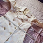 Stay stylish with this elegant cream double-breasted coat. Fresh out of the cleaners, it has a couple of small spots as shown in the last two pictures, but other than that it's in very good condition. Please see pictures for details and let me know if you have any questions I ship the next business day