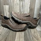 Explore the great outdoors or simply enjoy everyday comfort with these Merrell Brown Dual Density Men's Jungle Moc Hiking Slip-On Shoes. Crafted with durable nubuck uppers and comfortable fabric lining, these shoes are perfect for hiking, trail running, or casual wear. The slip-on style ensures easy wearability, making them an excellent choice for travel or activewear. The shoes feature a solid brown color and a round toe shape, providing a classic look that pairs well with any casual outfit. With a standard shoe width and a robust rubber outsole, these shoes offer stability and traction for any adventure. Whether you're hitting the trails or running errands, these Merrell slip-ons are tailored for men who seek both style and functionality.
