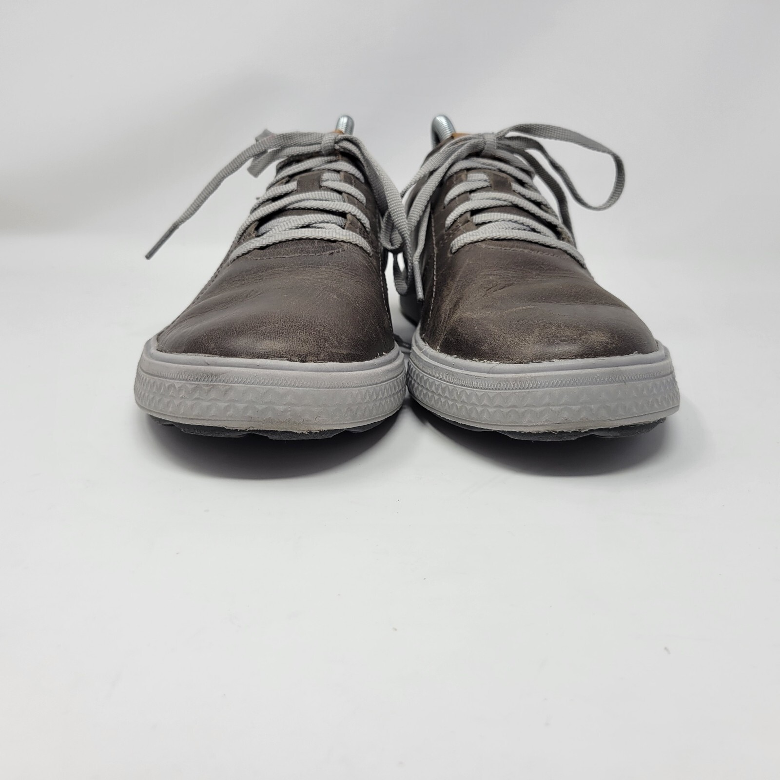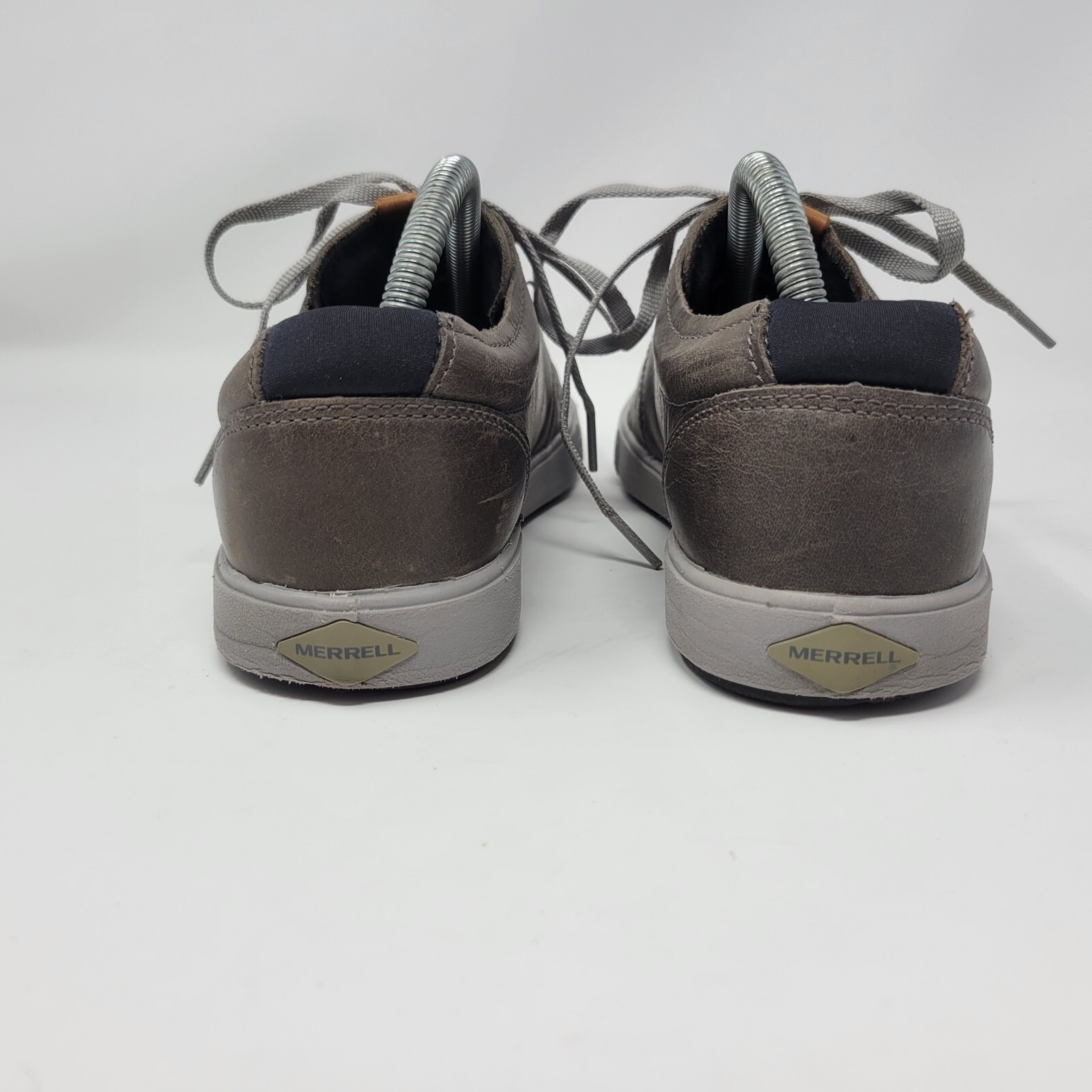 These Merrell Barkley sneakers are crafted in brunette brown leather with a lace-up closure. Featuring a round toe shape and rubber outsole, they offer comfort with cushioned and padded insoles. Ideal for travel, activewear, casual, or workwear, these M-width shoes in size 8 (UK 7.5, EU 41.5) are perfect for various occasions. The design is accentuated with the Merrell logo and suits a hipster, school, outdoor, city, preppy, or sports theme. These shoes are in excellent “pre owned” condition. For more information, please see photos or feel free to contact me with any questions. All orders are shipped within 24 hours of payment received.