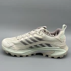The Merrell Moab Speed 2 Women's 9.5 Greige Trail Running Hiking Shoes are designed for outdoor activities like hiking, running, and jogging. These sneakers feature a breathable mesh upper, cushioned foam insole, and rubber outsole for comfort and durability. The lace-up closure and low-top shoe shaft style provide a secure fit for active wear. With a stylish solid color and logo accents, these shoes are perfect for summer, fall, and spring seasons. The Merrell brand is known for quality athletic footwear, making these shoes a great choice for women looking for performance and style in their footwear.