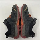 Hit the trails with the Merrell Trail Chaser Hiking Sneakers! These black and grey sneakers are designed for men with a US shoe size of 7.5M. Size is worn off but say 38EU so they would be a 7.5, The breathable mesh upper material and cushioned features provide comfort and support for your outdoor activities, whether you're hiking or running and jogging. The sneakers have a hook and loop closure for easy wear and a standard shoe width for a snug fit. The colorful and sports-themed design is perfect for the avid hiker or jogger. With a low top style, the Merrell Trail Chaser sneakers are versatile for both activewear and casual wear. Get ready to conquer the trails with these stylish and functional sneakers!
