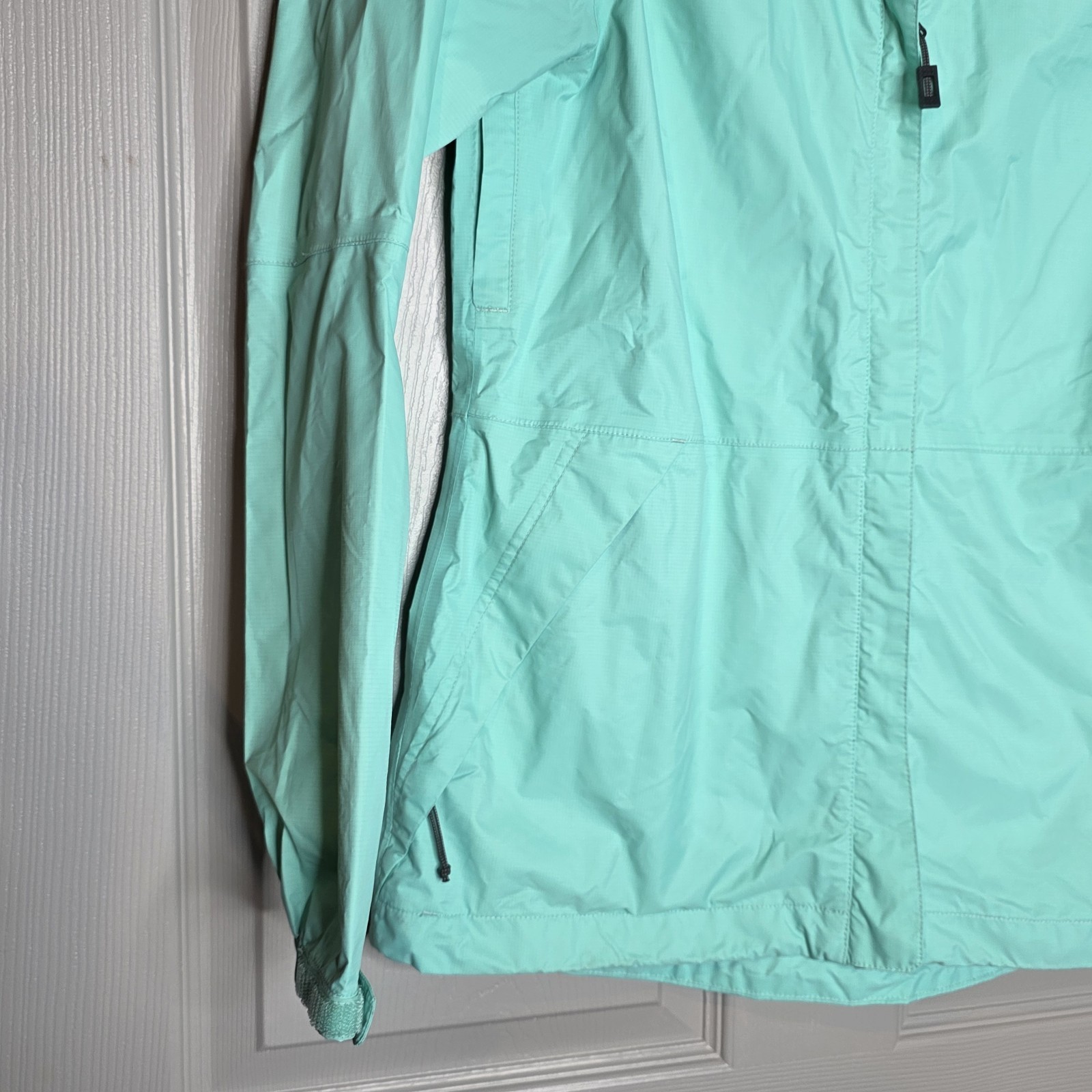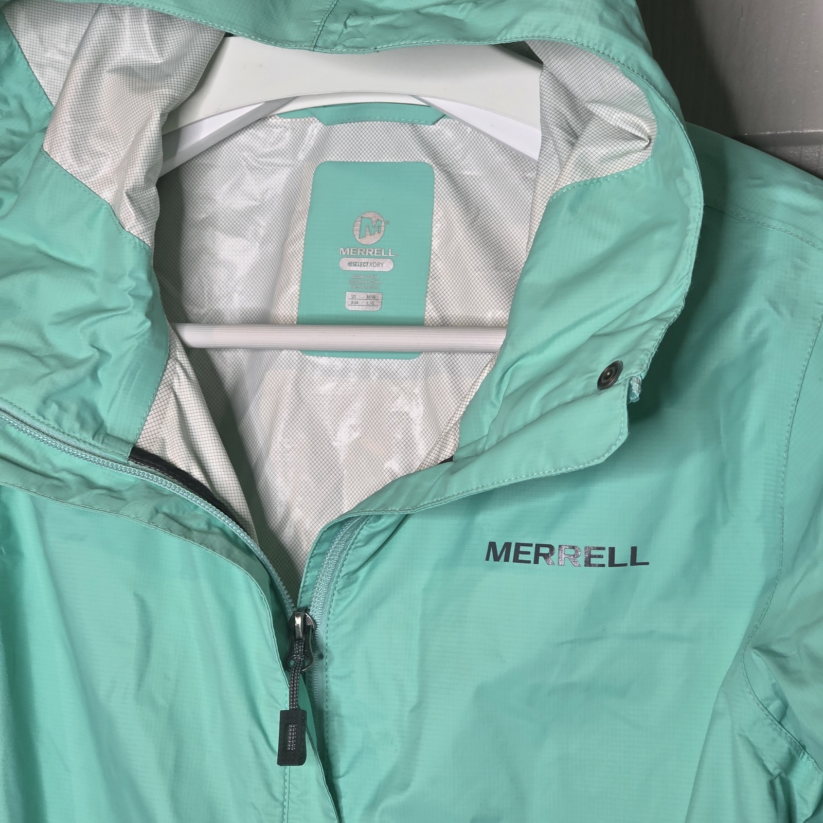The Merrell Waterproof Select X Dry Teal Full Zip Hooded Windbreaker Rain Coat in size medium is a stylish and functional jacket designed for women. Made with a durable nylon outer shell in a solid blue color, this rain coat is perfect for the fall and spring seasons. It features a regular fit and is waterproof, making it ideal for staying dry during wet weather. With the brand's reputation for quality and the Marmot Precip model, this jacket offers both performance and style for outdoor adventures or everyday wear.