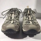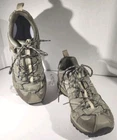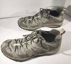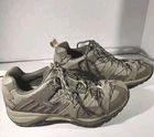 Merrell Women's Size 9 Vibram Olive Gray Water Resistance Footwear Shoe [449] Embrace the great outdoors with these Merrell women's sneakers, size 9, designed to deliver comfort and performance. The olive and gray color scheme offers a versatile look that transitions seamlessly from a morning run to a casual day out. Constructed with a durable blend of fabric and leather, these athletic shoes are built to withstand your active lifestyle. Key features include a breathable lining, stretch fabric, air-cushion insoles and a water-resistant design to keep your feet dry and comfortable in any condition. The low-top shaft style ensures an easy fit, while the Bungie lace closure provides a secure, adjustable fit for all-day wear. Whether you're hiking trails or running errands, these sneakers are ready for action.