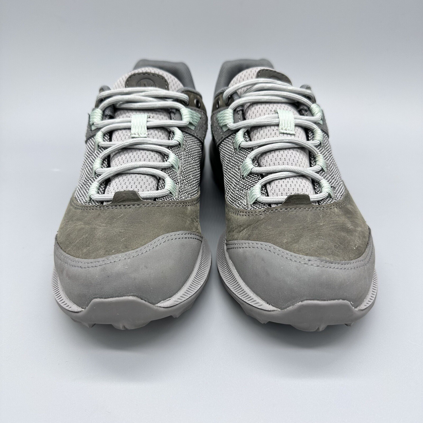Merrell Womens Zion Hiking Shoes Size 7.5 US Gray Green Blue Low Top Active Shoe is a grayish green color and the accents are a light blue. A nice pair of shoes in good pre-owned condition with very minor signs of use and plenty of life left. See all photos. Feel free to reach out with questions.