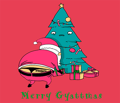 Merry Gyattmas! Naughty Santa's been caught red-handed, delivering early Christmas cheer to the little ones. Spread some holiday humor with this hilarious, hand-printed tee. Perfect for lightening up family gatherings.