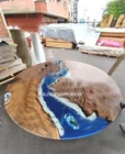 Mesa central de resina epoxi oceánica mesa lateral epoxi decoración de madera natural