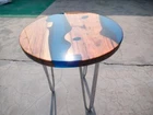 Mesa de centro azul epoxi hecha a mano madera natural muebles artísticos