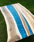 Mesa de comedor epoxi borde vivo madera de nogal tamaño personalizado pedido en pulgadas