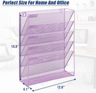 Menu Other Items Feedbacks About Us Contact Us Add To Favorites Desk File Organizer Mesh 6 Tier, Hanging Wall Mount Document Organization Stand, Desktop Vertical Mail Paper Folder Holder Rack with Bottom Tray for Office Home Cubicle, Light Purple Stay organized: Use this 5 tier + 1 bottom tray wall file holder to keep your office space neat and tidy. It's perfect for storing files, mail, magazines, and more Stylish and functional: The purple design adds a touch of elegance to your office decor, while providing a practical solution for keeping your paperwork in order Versatile wall organizer: Hang it on the wall or place it on your desk for easy access to important documents. The multiple tiers allow for convenient categorization and organization Stable and Sturdy: Made of high-quality metal, this file holder is built to last and can withstand daily use. It's also easy to clean, ensuring long-term usability Great gift idea: Surprise a friend, coworker, or family member with this stylish and practical wall file organizer. It's perfect for home offices, classrooms, or any professional environment Product Description Item Specification Item model number EP-5FILE-LP Unit Count 1.0 Count Batteries Required? No Finish Painted Mounting Type In Wall Part Number EP-5FILE-PUR Color Light Purple Size 6 Tier Product Dimensions 12.2"L x 5.5"W x 9.5"H Material Iron, Metal Country of Origin China Item Weight 3.1 pounds Shape 5 Tier Light Purple Batteries Included? No Number Of Pieces 1 Finish Type Painted Included Components Mounting Harware Dimensions Shipping Returns Additional Info Product Dimensions: 5.5 "h x 12.2 "h x 9.5 "h. Weight: 3.1 lb Fast shipping is very important for us. Our standard shipping service is FREE. Your order will be shipped within 1-3 business days upon full payment received. Most items are delivered within 3-5 business days, however, please allow 3-10 business days. We are shipping only to USA. We only ship to the confirmed Paypal address. We reserve the right to cancel any order for any reason at any time. We are not responsible for undeliverable addresses. We offer a 30 day return policy from checkout winning date. Your satisfaction is guaranteed! If for any reason you are unhappy with your item, just return it within 30 days for a full refund, minus shipping cost. Please contact us prior to initiating a return so that we can issue you a refund authorization. Items defective upon receipt must be packaged in their retail packaging as if new and returned with a detailed description of the problem. Return shipping fees are not refundable. We reserve the right to decline any returns if the above guidelines are not followed. All of our items, unless otherwise stated, will only run on 120 volts. Please check to make sure your country complies with these specifications. If you have a problem or question regarding your transaction please contact us before leaving any type of feedback. We will work with you to resolve any problem you may have.