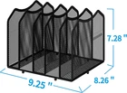 Store New Arrivals Add to Favorite View Feedback Mesh Desktop File Sorter Organizer, 5-Section Bookshelf for Desk Home Office, Black Description Item model number ST57824 Manufacturer Mesh Desktop File Sorter Organizer, 7-Section Bookshelf for Desk Home Office, Black Style magazines Material Metal Number of Items 1 Mounting Type Tabletop Color Black Finish Type Metal Product Dimensions 8.26"D x 9.25"W x 7.28"H Assembly Required Yes Material Type Metal Room Type Home Office Manufacturer Part Number ST57824 Item Weight 1 pounds Size 1-Pack Color:Black Number of Shelves 5 Shelf Type Tiered Shelf Recommended Uses For Product Books, Files Special Feature Portable Included Components Hardware 【Multifunctional Organization 】It can store magazines, records, file folder, books, laptop and other items, very useful organizer, great for home, bookcase, office, waiting rooms and breakrooms etc. 【Personalized Organization 】One set contains two, can be used alone or two can be connected together, you can extend and strengthen the storage space according to your needs, or you can choose to buy a two-pack to strengthen the expansion function. 【Stability Construction】Package include assembly parts and instructions. Very easy to assemble. Sturdy durable metal frame with black coating. 【Save space】You can arrange the sundries on the desktop neatly, saving you space and keeping your desktop clean.The best choice for your office, school and home use 【Dimension】9.25''W x 8.26''D x 7.28'' H Product Description ABOUT US We offer the best prices around on high quality products. Our E-store includes media such as books, movies, music and games while offering electronics, toys, sporting apparel, clothing, tools, general home, garden items and more. SHIPPING We are always working hard to ensure your package arrives as soon as possible. Please understand that some factors like weather, high postal traffic, and the performance of shipping companies are outside of our control. We offer free shipping to the lower 48 states and ship within 2 business days of payment, usually sooner. We do not accept P.O. Boxes. Please provide a physical address. RETURNS We offer a 30-Day Return Policy on items which you are not completely satisfied with. You have the option for a full-refund or an exchange of the item. No returns are available on items shipped outside of the USA. PAYMENT We accept PayPal. CONTACT US This page content is yet to come Please ad us to your favorite seller and visit again later Thank You