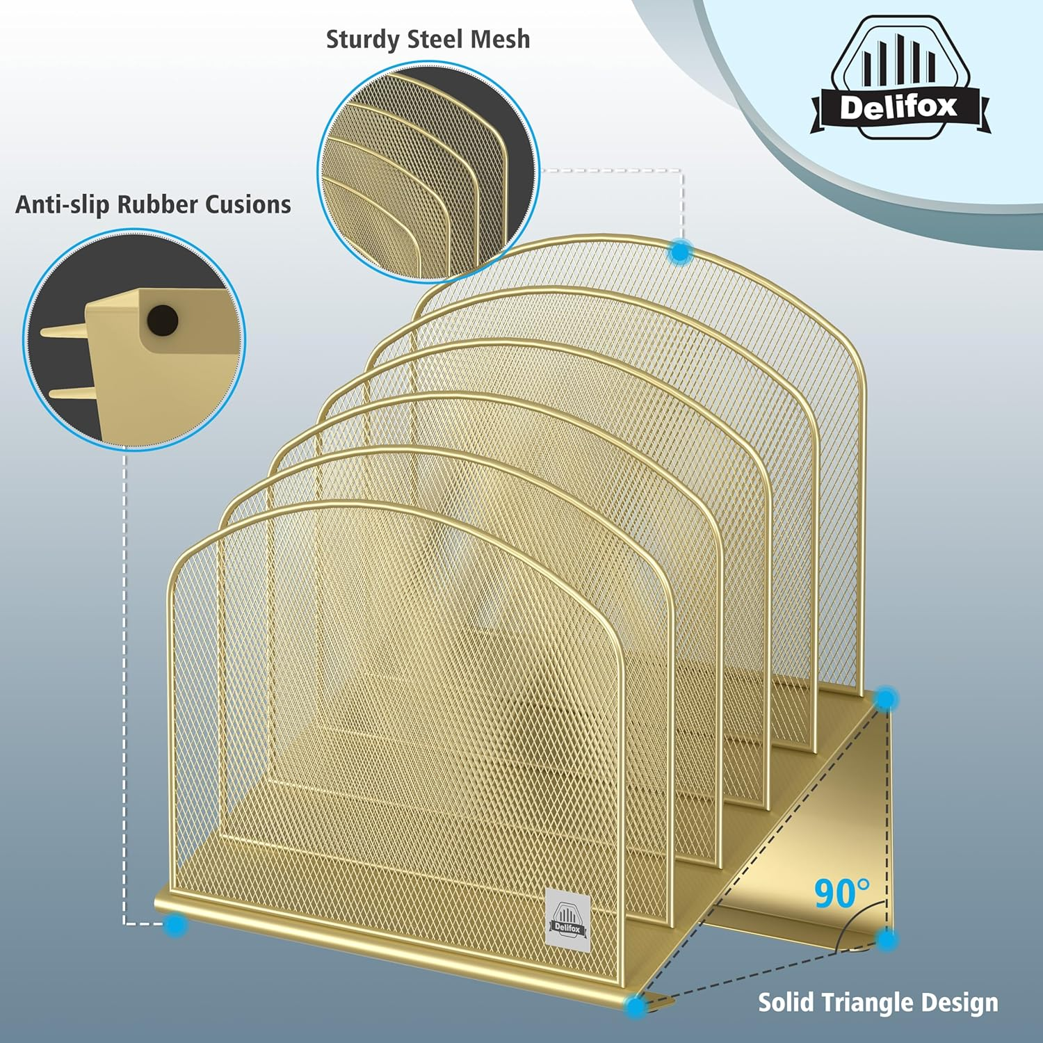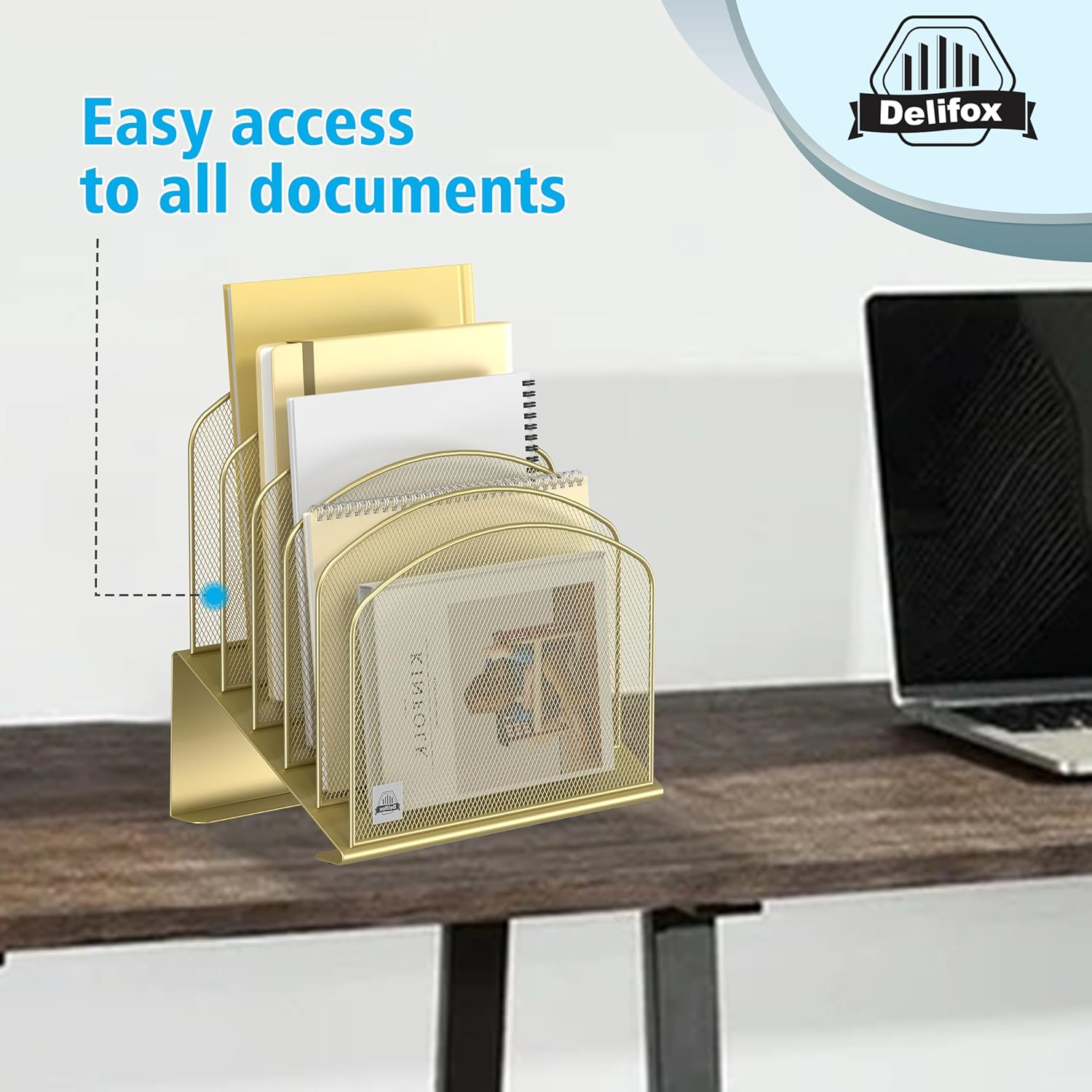 This file organizer is a game-changer for my cluttered desk! The sleek gold metal design looks stylish while keeping everything neatly sorted. The five sections are perfect for separating documents, folders, or even mail—no more digging through piles. Sturdy yet lightweight, it stays put without taking up much space. Love how it tilts slightly for easy access. Super simple to set up—just unwrap and use! Really helps me stay organized at work. Highly recommend for anyone needing a tidy workspace.