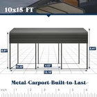 Return Policy Fast Delivery Trusted seller Metal Carport, 10x15FT Heavy Duty Steel Carport All-Weather with Galvanized Steel Roof & Heavy-Duty Anchor Rods for Pickup Trucks, Boats and Tractors Product Description Stability & Safety: Equipped with heavy-duty anchor rods, this carport can be securely installed on various surfaces like mud, asphalt, or concrete. The sloped roof design, along with high-density weatherstrip tape, provides excellent leak protection, ensuring a safe and stable shelter for your vehicles. Rugged Durability: The Heavy-Duty Outdoor Metal Carport is engineered to withstand all weather conditions with its galvanized steel roof and powder-coated steel frame, offering superior protection for your vehicles. The outer size of metal carport car canopy 13.3'W x 20'D x 8.85'H. The eave height of the carport canopy 7.4'. The maximum entrance height 8.85'. 8 anchor bolts are included for further stabilization. The carport can withstand 100 MPH winds and it can also withstand 35 PSF of snow. Versatile Design: This multi-functional carport offers ample space not only for vehicles but also for trucks and boats. Beyond serving as a car shelter, it can be utilized for various outdoor activities such as parties, weddings, and trade shows, making it a versatile and practical addition to your outdoor space. Easy Installation: The Heavy-Duty Outdoor Metal Carport is designed for effortless assembly. With a simple structure, numbered parts, and easy-to-follow instructions, setting up this carport is a straightforward process. Customers can quickly and efficiently complete the installation, ensuring a hassle-free experience from start to finish. Enhanced Frame Structure: The metal carport boasts an upgraded frame structure that has been rigorously tested over 1000+ times, resulting in a 35% improvement in installation ease and stability compared to other carports on the market. This ensures convenience and peace of mind for users. Shipping Returns Payment Shipping Shipping is FREE to all addresses other than APO/PO boxes in the lower 48 states. All our stock ships from US-based warehouses. Shipped via USPS or UPS (depending on location and package weight) Unless stated otherwise, all orders will ship within 24-72 hours of your payment being processed. Check our feedback to see the great reviews of FAST shipping we offer. Returns Seller does not accept returns Payment We currently accept payment via eBay managed payments only. Once payment is cleared, we will dispatch your shipment within 1-3 business days. Please refer to the "Shipping" tab for more information regarding shipping speed to your destination.