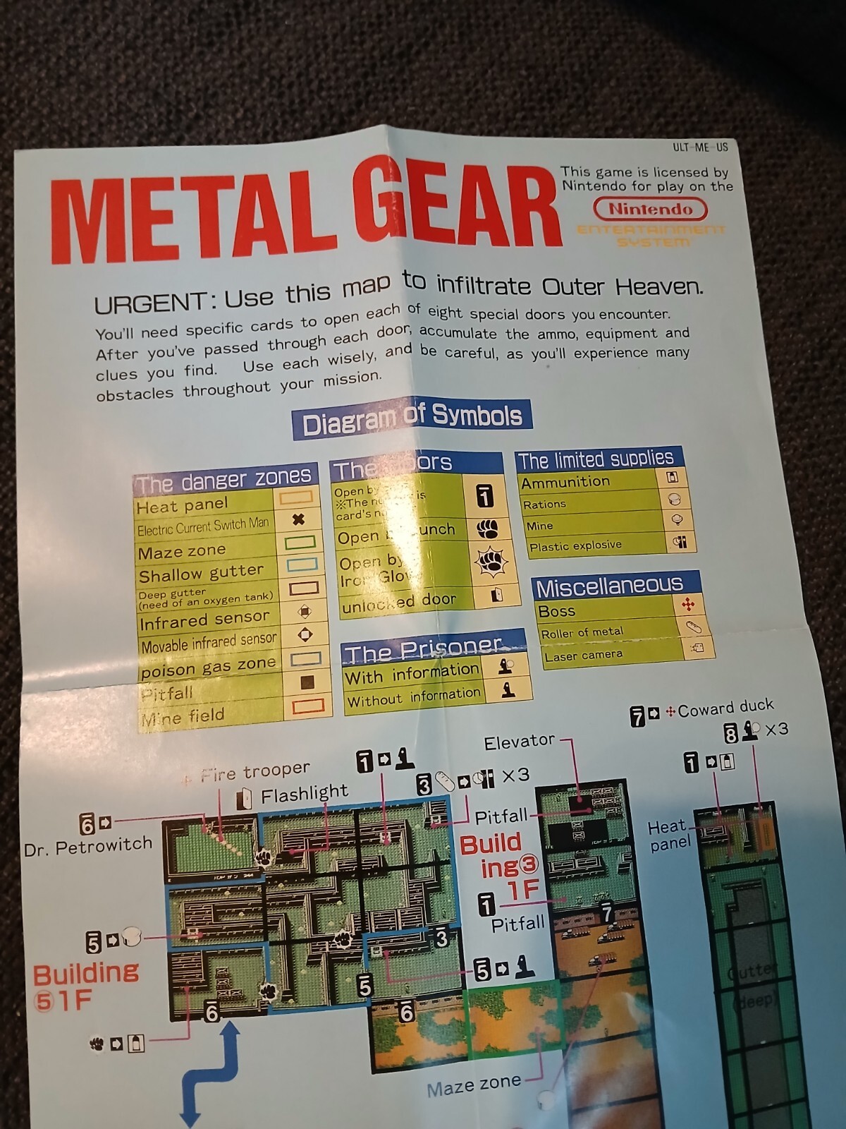 Metal Gear (NES, 1988) Complete CIB Near Mint Condition With Plastic Wrap - Box is near mint. Bottom right corner has crushing. Please check photos for details -Map is excellent and near mint. Some general light wear from age and being opened once or twice - Will be packaged well and shipped securely. - Please examine all photos carefully. I will be listing more great and rare items over the next few weeks. This includes Nes and N64 primarily. Please check my full listings!