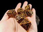 This is a set of Metal dice set, hollow, featuring dragons. The set contains 7 dice; you can also purchase a wooden dice vault to store them. Made of zinc alloy, it's allergy free and durable. For extra longevity, please keep it away from harsh chemicals. For a selection of dice boxes please see this link: https://www.ebay.co.uk/itm/403869623229 Description: • Materials: Zinc Alloy • Dice Set Weight: approx. 100 g DELIVERY: By default, only the version with a box will be tracked. For 'No Box' version, they package will be untracked but you can upgrade the shipping method at checkout. For the UK: • Fast free delivery - NOT tracked - 1-2 working days + 1 day for processing • Full refund if it does not arrive after ten business days. Outside of the UK: • Standard delivery - NOT tracked - 3-7 working days + 1 day for processing • Tracked delivery - 3-7 working days + 1 day for processing • Full refund if it does not arrive after 25 business days.