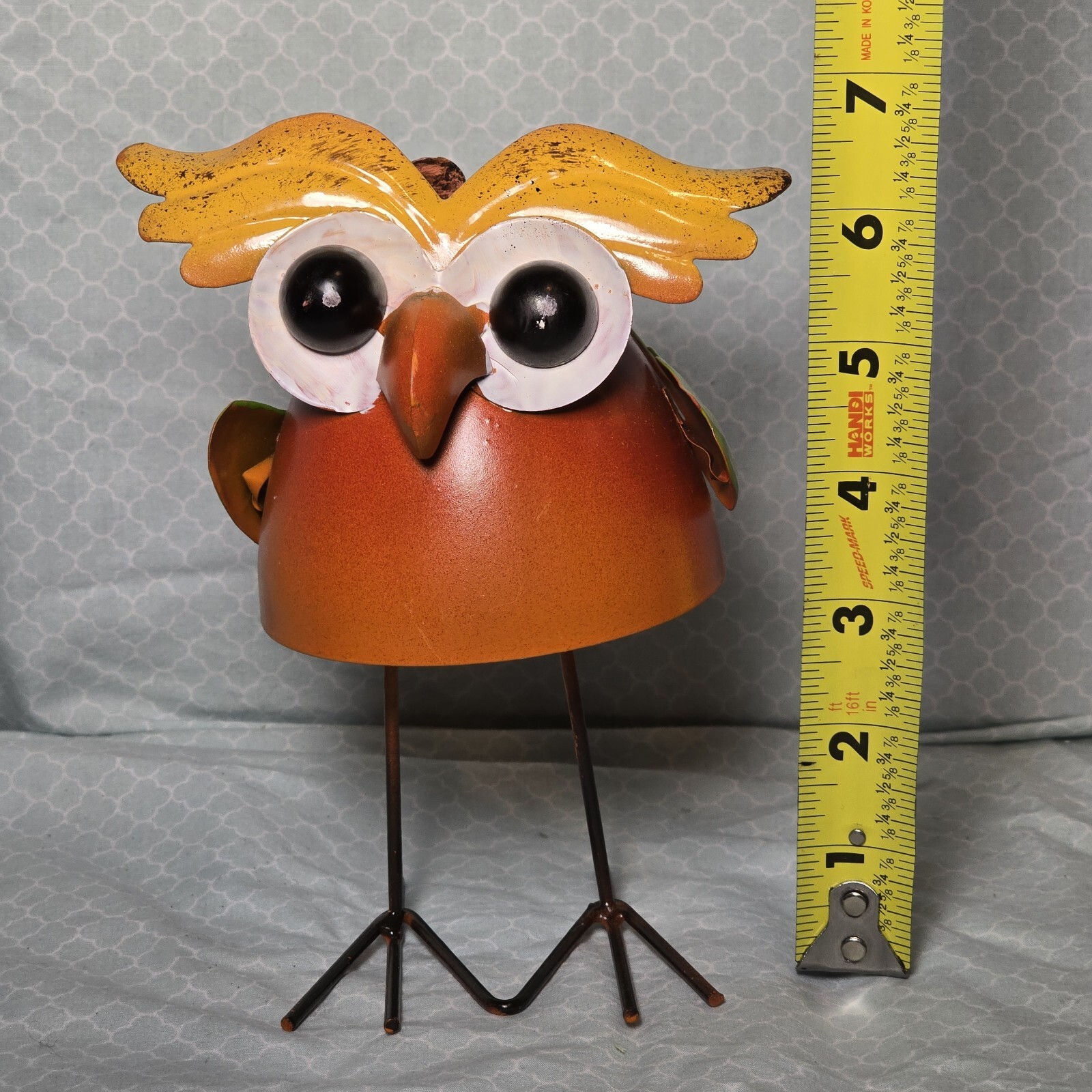 The Metal Owl Bobble Head is a small, multicolor traditional sculpture of an owl, suitable for both indoor and outdoor decoration. Made of metal with a metallic finish, this piece features a whimsical bobble head design that adds a touch of charm to any room or outdoor space. Perfect for those who appreciate wild animals and unique art pieces.