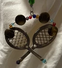 Add a touch of elegance and sophistication to your holiday decorations with this metal set of tennis rackets ornament. Perfect for collectors of sports items, this ornament is made of high-quality metal and features a stunning metallic finish. With its intricate details and exquisite design, this ornament is sure to catch the eye of anyone who sees it. Ideal for displaying on Christmas trees and other decorative items, this ornament is part of a collection of ornaments that are perfect for any occasion. Made of durable metal and crafted with care, this ornament is an excellent addition to any collection. So why wait? Add this beautiful metal set of tennis rackets ornament to your collection today!