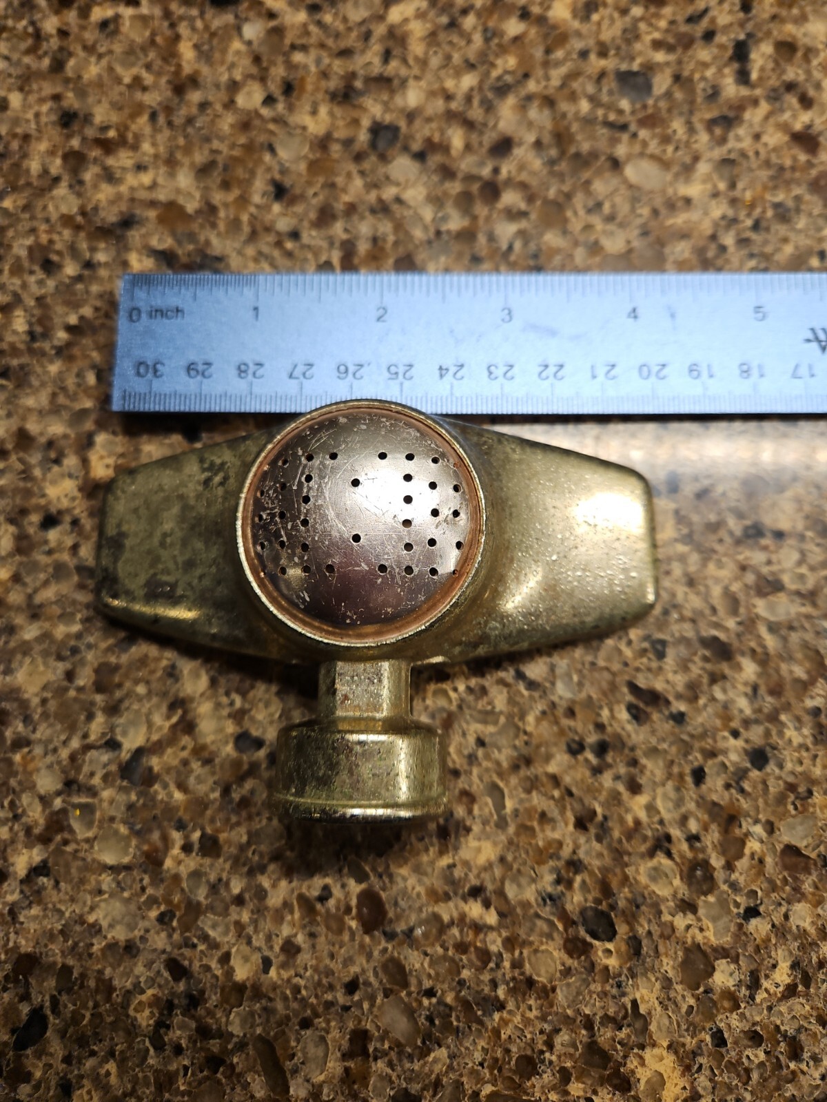 Introducing this vintage metal garden watering nozzle that will enhance your lawn irrigation experience.