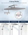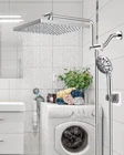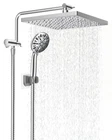 10 Inch High Pressure Shower Head: large rainfall shower head body is made of high quality ABS, and the back panel is made of certificated SUS 304 stainless steel to ensure rustproof, lightweight, durability, and long service life. Combined ultra-thin design with air-in technology, the large shower head has 144 splash jets that delivering a rain spray. The solid brass ball joint adjust the shower head to any angle you want to enjoy a relaxing hotel-style bathing experience. Square Shower Head Combo: This shower combination comes with 10 inch large square rainfall shower head, chrome face 7-Spray settings handheld shower head, 71 inch stainless steel shower hose, 12 inch shower head extension arm, adhesive shower head holder, washer, water restrictor, and installation manual. All metal solid Brass stainless steel extra long 71 inch shower hose is made of odorless EPDM material that can be used in high pressure and high temperature environment. Adjustable Shower Arm Extension: 12 Inch upgraded Z-shaped shower head arm extension is made of solid brass and stainless steel. It fits any rain shower head or handheld shower head, height can be adjusted up and down, shower head is always vertical in your large size and will not hit the shower arm, instead of sloping water like ordinary straight shower arms. Unique Z-shaped design enhances its bearing capacity, high rise your shower head, and can achieve vertical water. 7 Settings Handheld Shower Head: 5-inch shower head has soft rubber spray nozzles for easy cleaning. Chrome finish shower head has pressure-boosting effect for the ultimate shower experience, allowing you to choose from Seven (7) spray powerful high pressure settings to best suit your needs. The water flow regulator can adjust the water pressure to save water everyday. It's great for bathtub cleaning, bathroom hair washing, pet shower, or baby bath. All Metal 3-Way Diverter Valve: This shower head combo works with all standard 1/2'' pipe threads, and is very easy to install without tools. The 3-way diverter can be used with a shower head or with two showers at the same time. 3-way diverter and shower extension arm are designed to be connected together without leaking and shaking, while ordinary 3-way diverter is separated from extension arm, and it needs to be installed and connected together, which will lead to leak and shake.