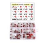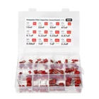 415 pcs, 4 Box Metalized Film Capacitor Assortment: 100 Volt Assortment, 130 pcs, 13 values: Tolerance: ±5%, Terminal Pitch 10mm 1nF (102), 10 pcs 2.2nF (222), 10 pcs 3.3nF (332), 10 pcs 4.7nF (472), 10 pcs 10nF (103), 10 pcs 22nF (223), 10 pcs 33nF (333), 10 pcs 47nF (473), 10 pcs 0.1uF (104), 10 pcs 0.22uF (224), 10 pcs 0.33uF (333), 10 pcs 0.47uF 63 Volt (474), 10 pcs 1uF 63 Volt (105), 10 pcs 250 Volt Assortment, 90 pcs, 10 values: Tolerance: ±10%, Terminal Pitch 5mm, 7mm, 10mm, 15mm, 20mm 10nF (103), 10 pcs 22nF (223), 10 pcs 47nF (473), 10 pcs 100nF (104), 10 pcs 0.22uF (224), 10 pcs 0.33uF (334), 10 pcs 0.47uF (474), 10 pcs 1uF (105), 10 pcs 1.2uF (125), 5 pcs 2.2uF (205), 5 pcs 400 Volt Assortment, 100 pcs, 11 values: Tolerance: ±5%, Terminal Pitch 10mm, 15mm, 20mm 10nF (103), 10 pcs 22nF (223), 10 pcs 33nF (333), 10 pcs 47nF (473), 10 pcs 0.1uF (104), 10 pcs 0.22uF (224), 10 pcs 0.33uF (334), 10 pcs 0.47uF (474), 10 pcs 0.68uF (684), 5 pcs 1uF (105), 10 pcs 2.2uF (225), 5 pcs 630 Volt Assortment, 95 pcs, 12 values: Max Voltage: 630V, Tolerance: ±5%, Terminal Pitch 10mm, 15mm, 20mm, 25mm 10nF (103), 10 pcs 22nF (223), 10 pcs 33nF (333), 10 pcs 47nF (473), 10 pcs 68nF (683), 10 pcs 0.1uF (104), 10 pcs 0.22uF (224), 10 pcs 0.33uF (334), 5 pcs 0.47uF (474), 5 pcs 0.68uF (684), 5 pcs 1uF (105), 5 pcs 2.2uF (225), 5 pcs Film Capacitor Assortment includes 4 Boxes with different voltage ratings: 100 Volt Assortment, 130 pcs: 1nF, 2.2nF, 3.3nF, 4.7nF, 10nF, 22nF, 33nF, 47nF, 0.1uF, 0.22uF, 0.33uF, 0.47uF, 1uF 250 Volt Assortment, 90 pcs: 10nF, 22nF, 47nF, 100nF, 0.22uF, 0.33uF, 0.47uF, 1uF, 1.2uF, 1uF 400 Volt Assortment, 100 pcs: 10nF, 22nF, 33nF, 47nf, 0.1uF, 0.22uF, 0.33uF, 0.47uF, 0.68uF, 1uF, 2.2uF 630 Volt Assortment, 95 pcs: 10nF, 22nF, 33nF, 47nF, 68nF, 0.1uF, 0.22uF, 0.33uF, 0.47uF, 0.68uF, 1uF, 2.2uF