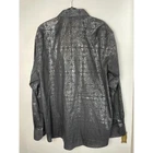 Metallic Dress Shirt Mens Black Evening Button Up Long Sleeve Night Out Size 2XL 18 1/2 Pit to Pit 26.5" Length 30" 100% Cotton Black with silver print Very Good Condition no known Flaws Retro, party shirt, regencycore, club night,