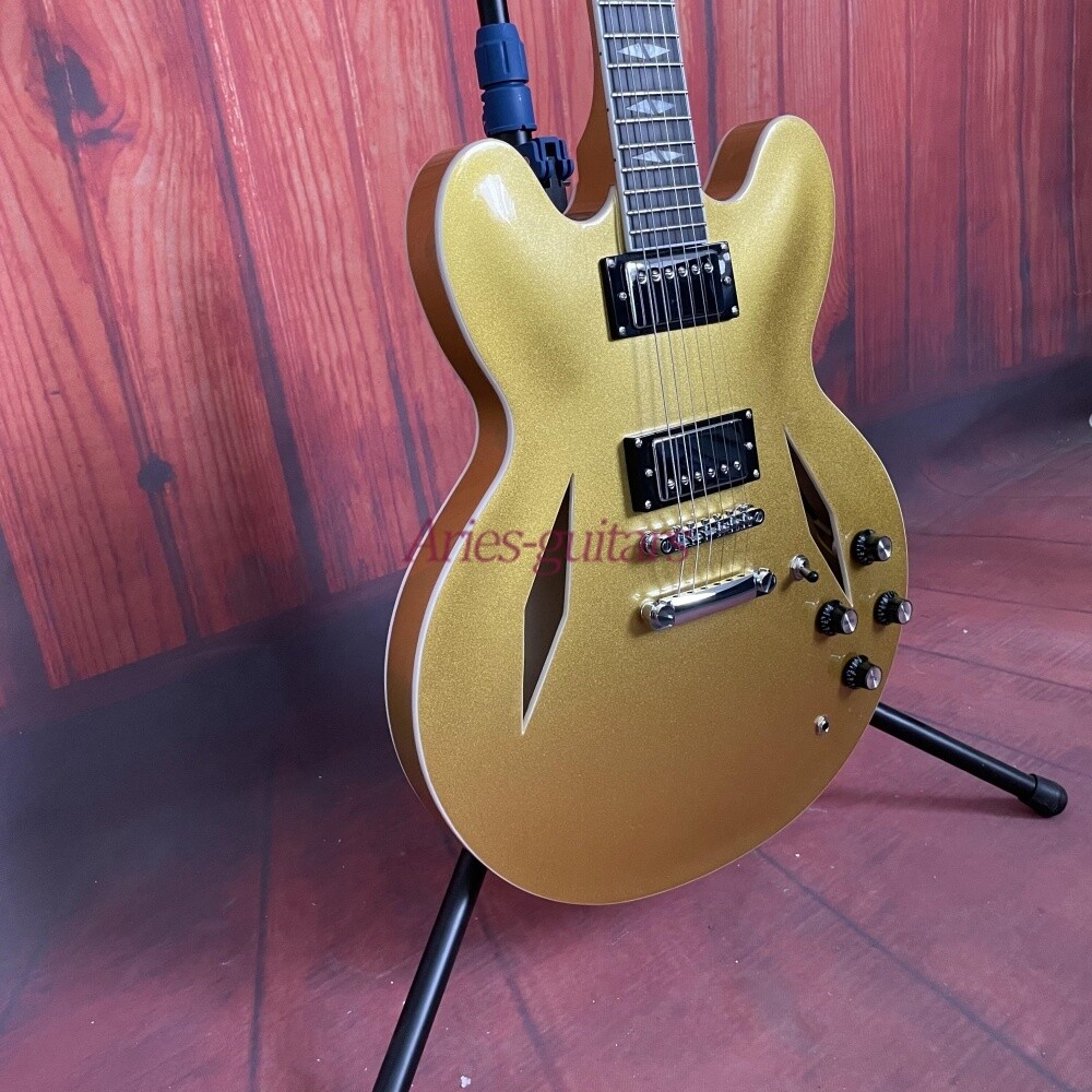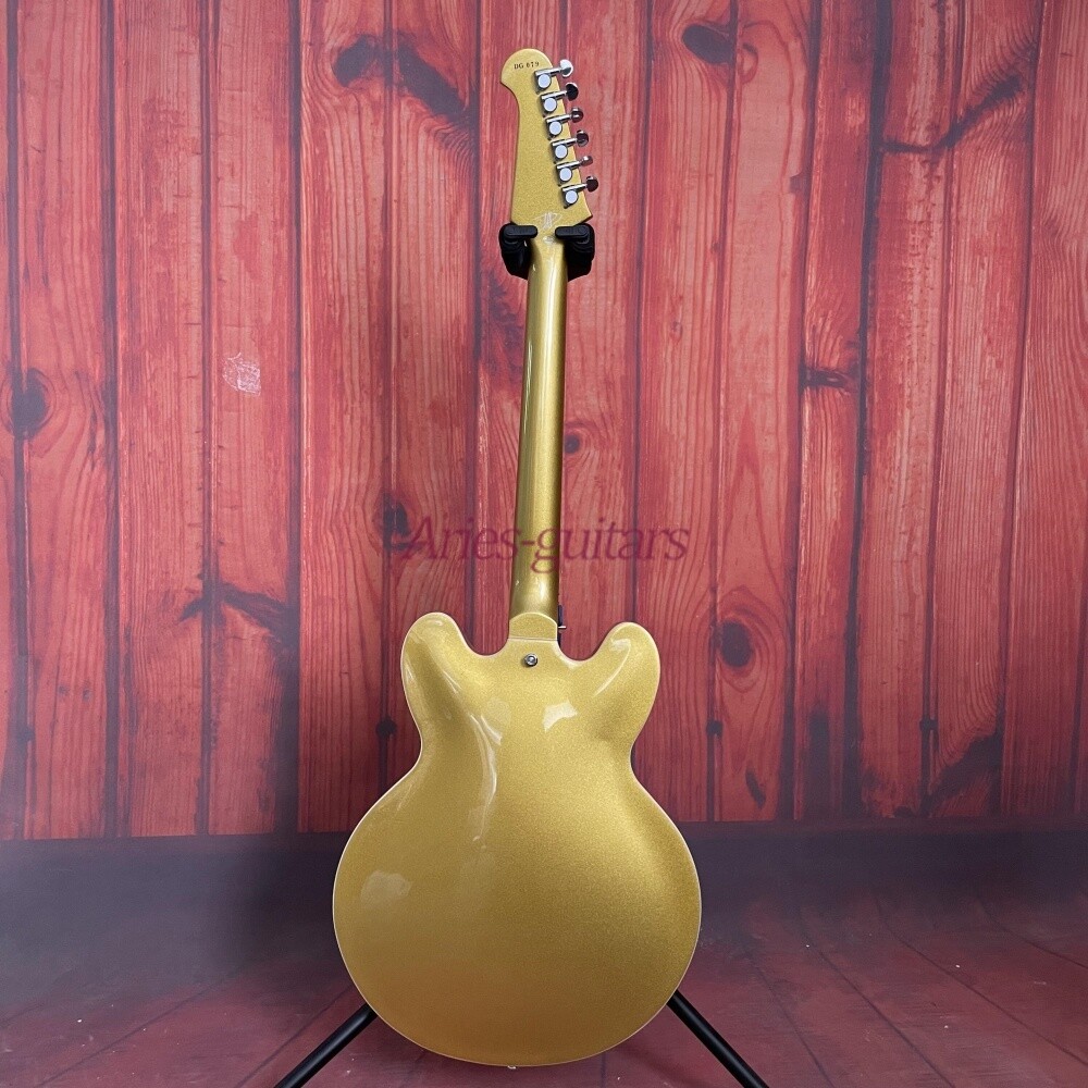 Metallic Gold DG-335 Maple Semi Hollow Body Electric Guitar HH Pickup in Stock Body: Maple Neck: Mahogany Fingerboard: HPL Frets: 22 Pickups: H-H Bridge: Fixed Hardware: Chrome Joint: Set in Package: 1x Guitar Please Note: Each of our guitars is handcrafted, ensuring individual uniqueness. ♪ Wood grain, texture, a nd color might slightly vary from the images. Customer Service Commitment We are a guitar factory from China. Many of our guitars are sold to Europe, North America, South America, Australia,etc. We believe we can offer you high quality guitars with reasonable price. If you want to customize the guitar or get a unique guitar, please let us know. We can build a guitar as per your requirements, except during busy factory seasons. ♫ Please be aware that our quoted prices do not cover any customs fees or other buyers responsible taxes. ♫ Our 30-day return policy means you can shop with confidence. For any purchase issues, contact us within 3 days of receipt. We are committed to a smooth exchange/return/refund process and ensure professional packaging for safe transit. ♫ Return Process Need just a part? We can send it directly. For returns due to damage or defects, initiate the process on eBay, keeping the product in its original condition. ♬