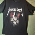This Metallica 81 Skull Band T-Shirt is a must-have for any heavy metal fan. The shirt features a solid black color with a crew neckline and short sleeves. The regular fit and jersey fabric type make it comfortable to wear, while the logo accents and band theme add a touch of rock-and-roll style. Machine washable and made of cotton, this unisex adult t-shirt is perfect for casual wear or concert nights. The size medium fits true to size, and the distressed details give it a unique edge. Add this t-shirt to your collection and show off your love for Metallica.