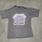 This Metallica "Ride The Lightning" graphic T-shirt features a bold design on a black cotton fabric, offering comfort and style. Suitable for casual wear. • Crew neck • Short sleeves • Graphic print • 100% cotton • Unisex sizing Minor collar wear, slight fading on the fabric. Top to bottom = 25 inches