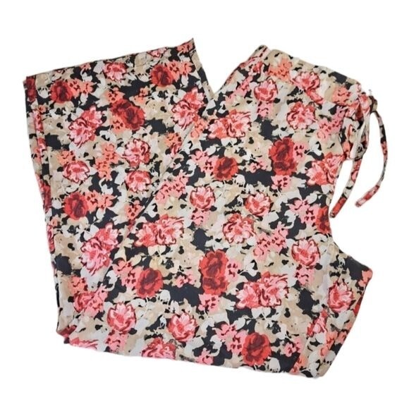 Women's Floral Print Palazzo Pants Tan & Black Polyester XL/EG Comfy Lounge Wear