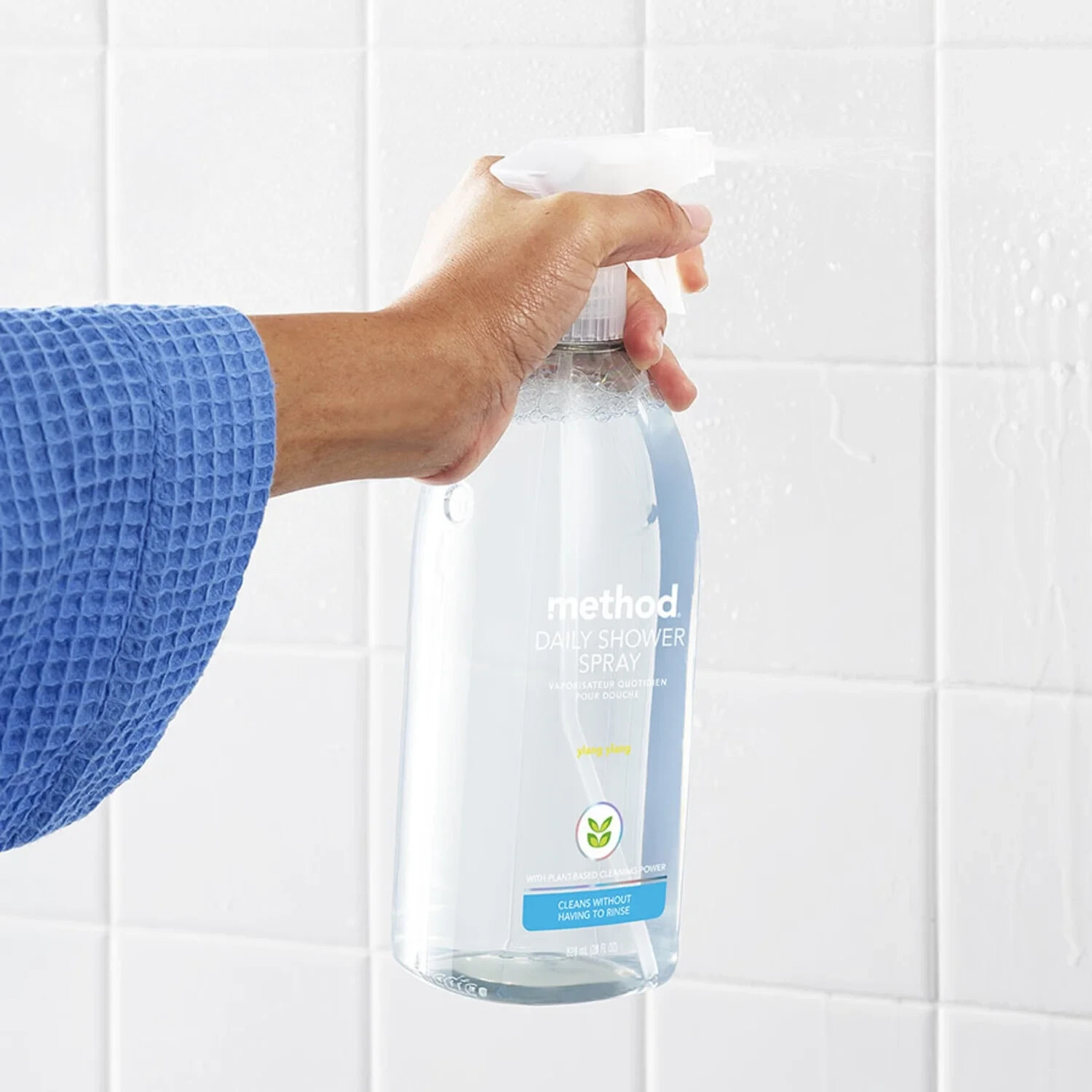 Contains (1) 68oz bottle of daily shower cleaner refill. Refills your method daily shower spray bottle 2.43 times (to be exact). Biodegradable formula made with plant-based cleaning power. Dissolves + prevents soap scum without having to rinse. Cleaning spray works on showers, tile, fixtures, glass and tubs. Cruelty free. tested by people, not on animals. This crisp eucalyptus mint scent gets a little boost from notes of bergamot, citron and lime leaf.