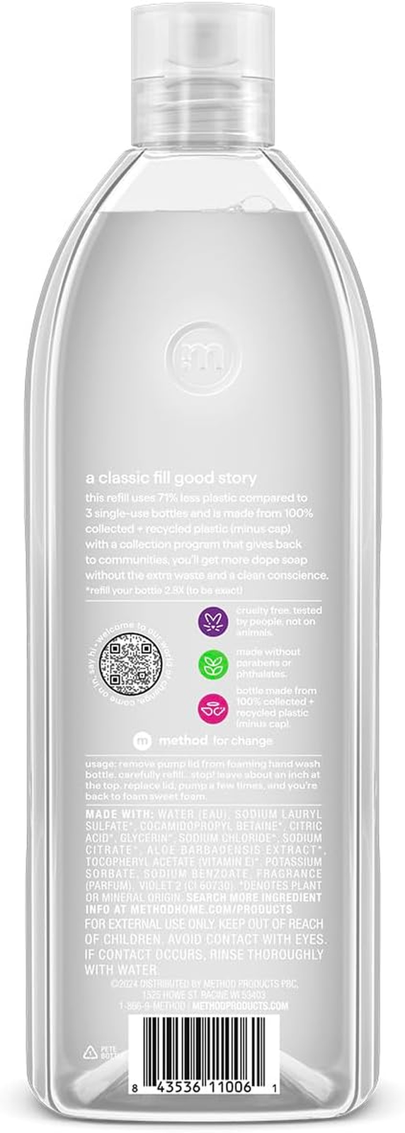 Neighborhood service Foaming Hand Soap, Refill, Sweet Water, Recyclable Bottle, Biodegradable Formula, 28 Oz, (Pack of 1) ENJOY THE FEATURES Contains (1) 28 ounce refill bottle of foaming hand wash. Refills your method foaming hand wash bottle 2.8X (to be super exact). Biodegradable formula made with plant-based cleansers. Made without parabens or phthalates. 35% less plastic than using 3 new bottles. Bottle made with 50% recycled plastic (PCR) and designed to be recycled. Glasses are better half-full. Hand wash, too – or better yet, totally full. And for that, we offer this refill. Our biodegradable formula with plant-based cleansers comes in an adorably chubby tub made with 50% recycled plastic (PCR) and designed to be recycled again. It's a sudsy cycle of goodness. Item model number 843536105845 Item dimensions L x W x H 2.57 x 5 x 7.5 inches Product Dimensions 2.57 x 5 x 7.5 inches; 1.75 Pounds Country of Origin USA Item Weight 28 Ounces Age Range (Description) Adult Department Unisex-Adult Scent Sweet Water Size 28 Fl Oz (Pack of 1) 5.0 inches x 2.57 inches x 7.5 inches. Weight: 28.0 oz PAYMENT We accept all payments via Ebay using Credit Cards , PAYPAL , Apple Pay and many others SHIPPING We are always working hard to ensure your package arrives as soon as possible. Please understand that some factors like weather, high postal traffic, and the performance of shipping companies are outside of our control. We offer free shipping to the lower 48 states and ship within 3-5 business days of payment, usually sooner. We do not accept P.O. Boxes. Please provide a physical address. We do not ship internationally at this time. DELIVERY & RETURN POLICY We do not offer returns unless the item violates eBay policies. Please be aware these polices only make sellers accept returns if the item violates eBay's Buyer Guarantee. If you would like to learn more about this please visit eBay's Help Page. Thank you for your business